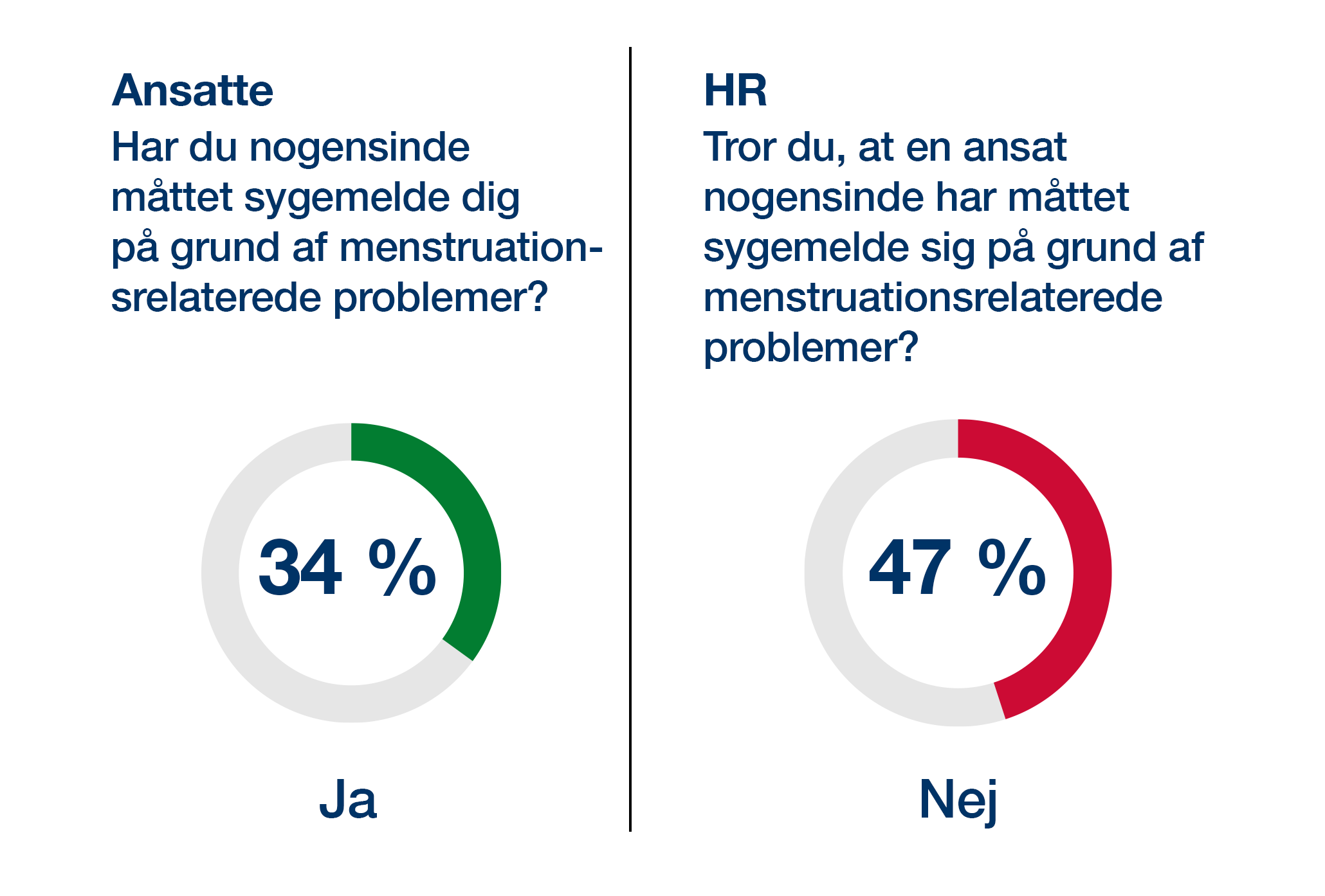 34 % af kvinder i arbejde har måttet sygemelde sig på grund af menstruationsrelaterede problemer – en stigning fra 27 % i 2023. Alligevel mener næsten halvdelen af HR-ansvarlige (47 %), at det aldrig er sket hos dem – hvilket vidner om en udbredt uvidenhed.