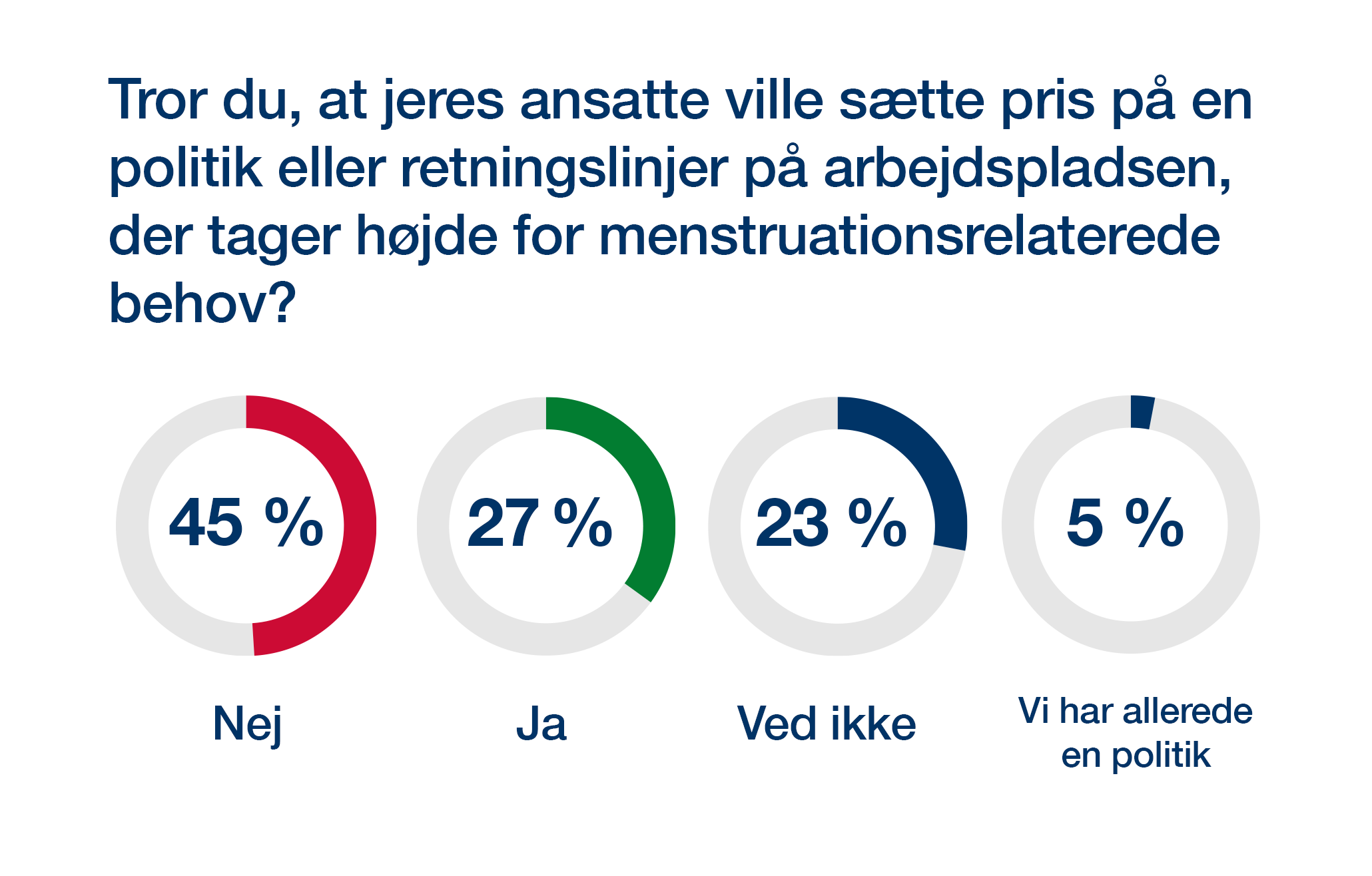 43 % mener, at det er vigtigt, at arbejdsgiveren tilbyder gratis menstruationsbeskyttelse som bind, tamponer og trusseindlæg..